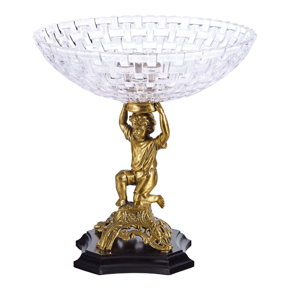 Чаша для фруктов с подножием в виде ангела Eden Garden Бронза Прозрачный в Саратове | Loft Concept