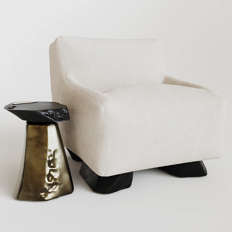 Кресло Cannes с мягкой обивкой букле молочного цвета  Молочный Черный в Саратове | Loft Concept
