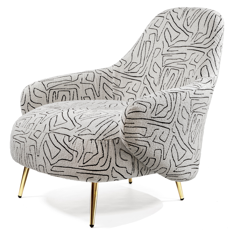 Кресло мягкое с принтом на золотистых ножках Onlooker Черно-белый Золотой в Саратове | Loft Concept