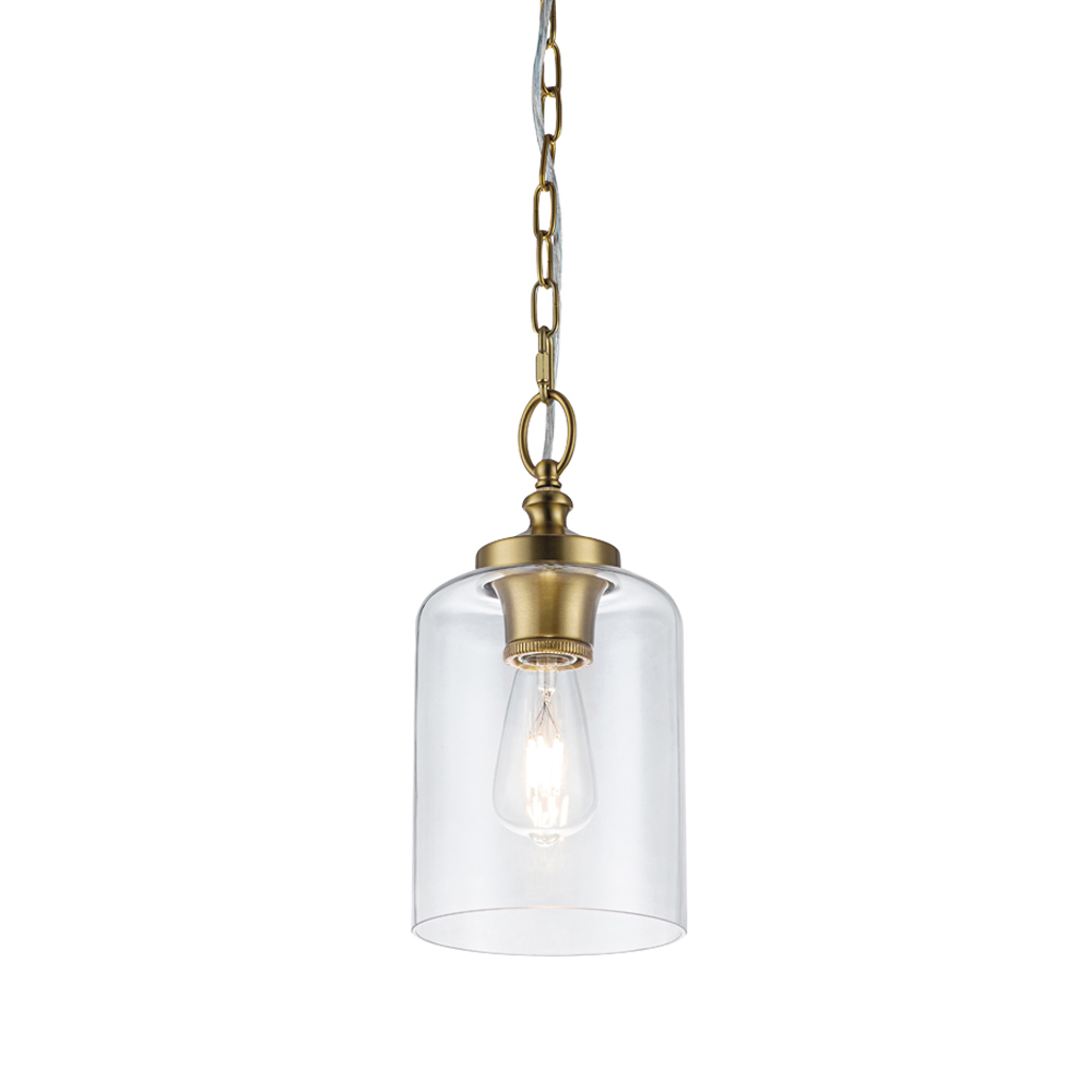 Подвесной светильник латунного цвета с прозрачным стеклянным плафоном Feiss