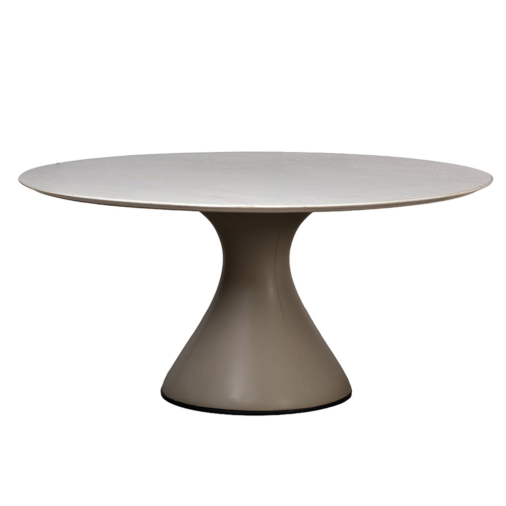Стол обеденный круглый мраморный на бежевом основании Valedmir