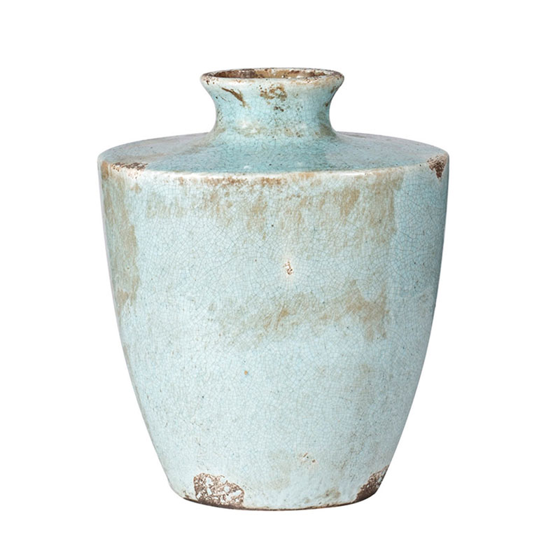 Ваза Терракотовая покрыта нежно-голубой глазурью.